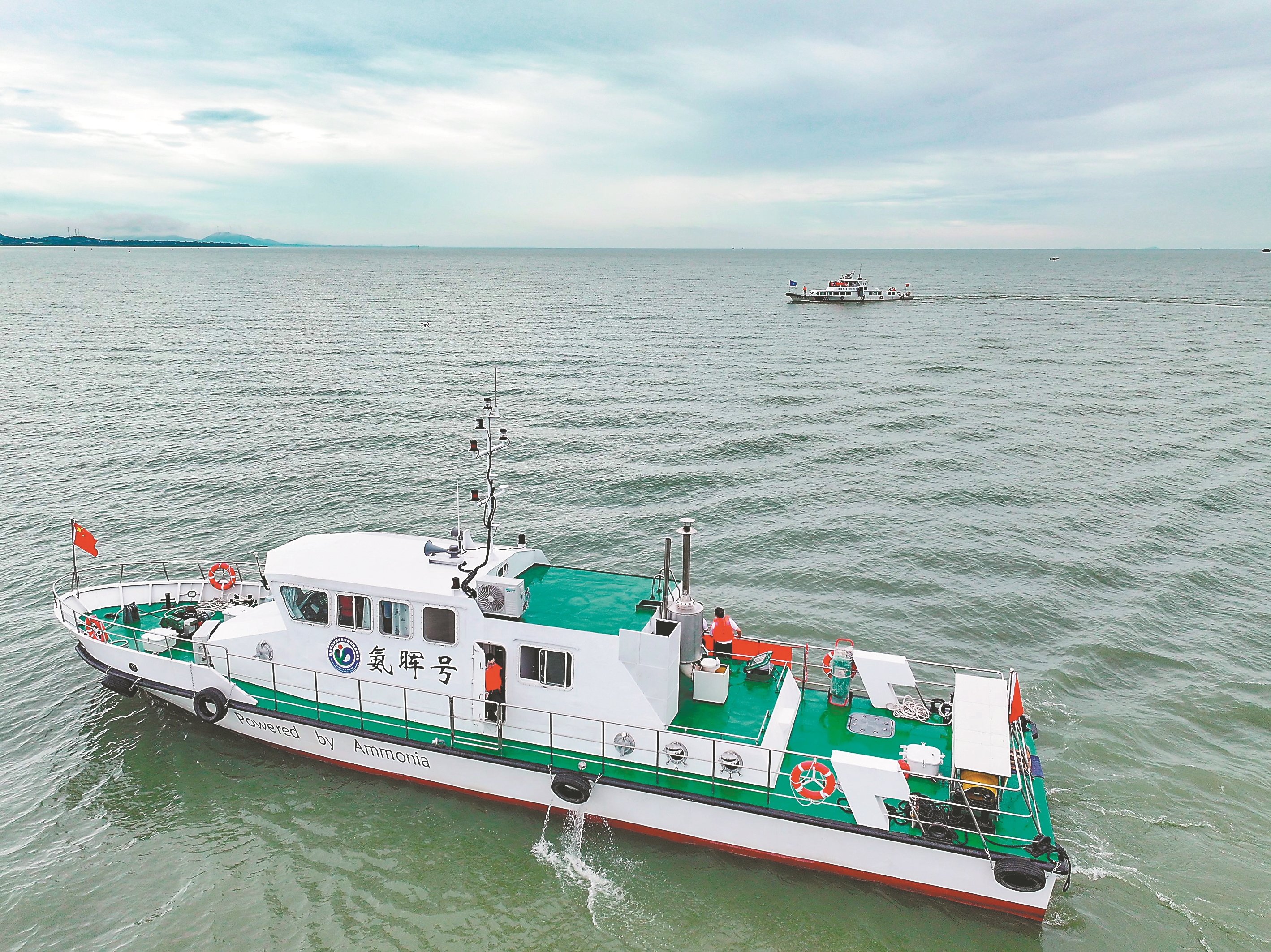 此次首航的“氨晖号”由合肥综合性国家科学中心能源研究院与旗下的深圳海旭新能源有限公司联合研发,搭载1台200kW的高速气体内燃发电机组、2台100kW推进电机及双桨推进系统,满载50吨,额定航速为10节。