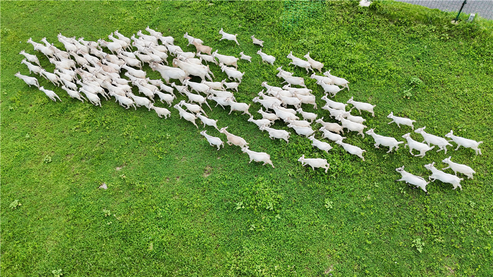 8月6日,南陵县许镇镇马元村,羊群欢快地在草地上奔跑。