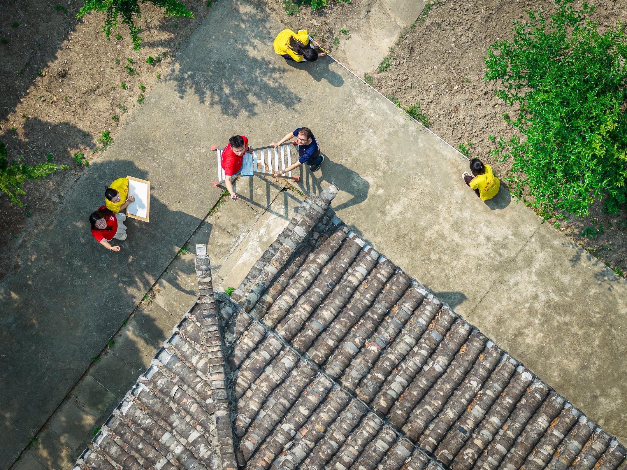 安徽理工大学“倾筑”服务团的同学们精准记录建筑各个部分的尺寸。