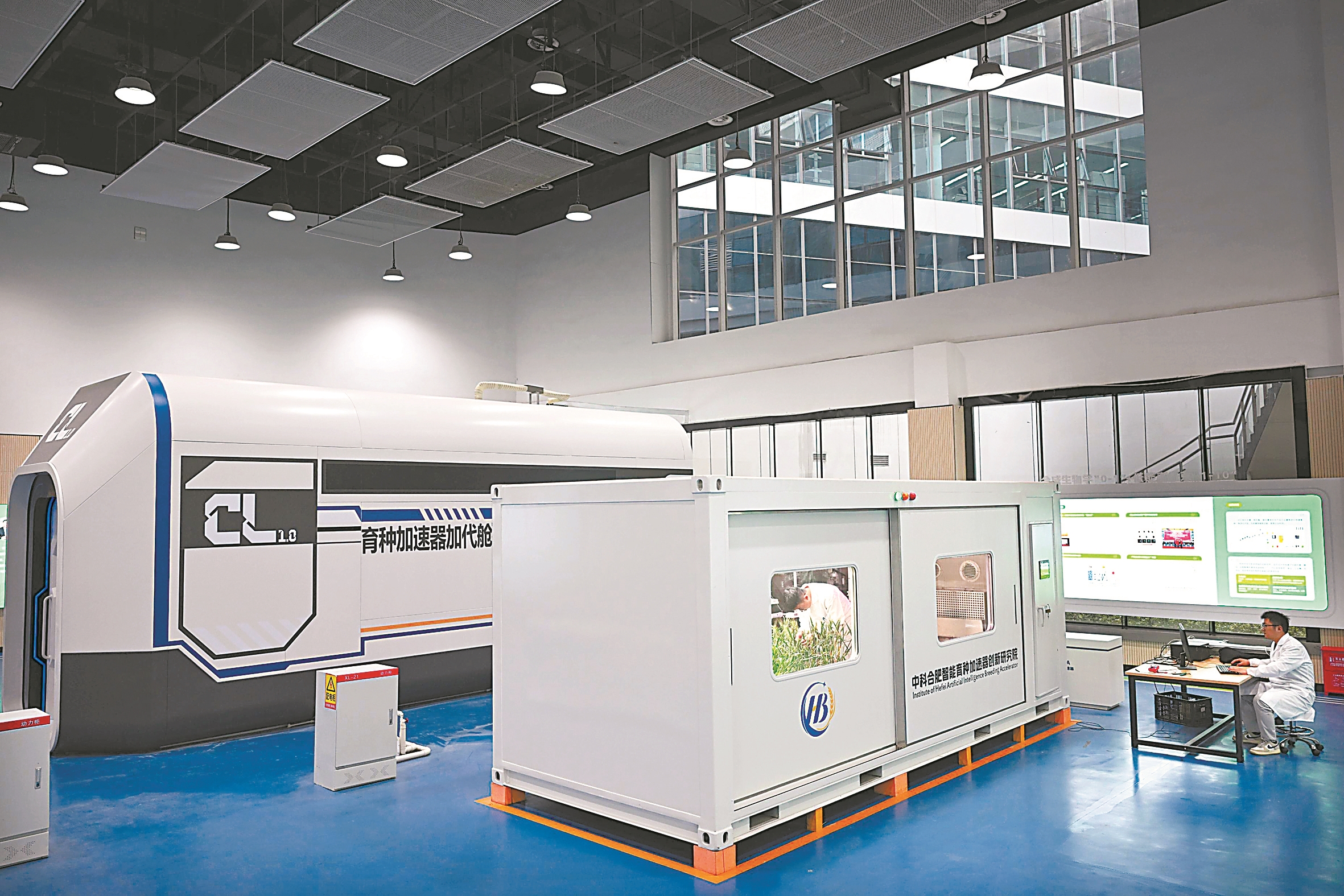10月10日,科研人员在中科合肥智能育种加速器创新研究院进行科研攻关。这是以生物技术和信息技术为基础的智能“育种4.0”时代的典型代表。育种加速的奥秘藏在三个关键“舱”里:离子舱诱变新品种;逆境舱“筛”出好苗子;加代舱加速种子迭代。