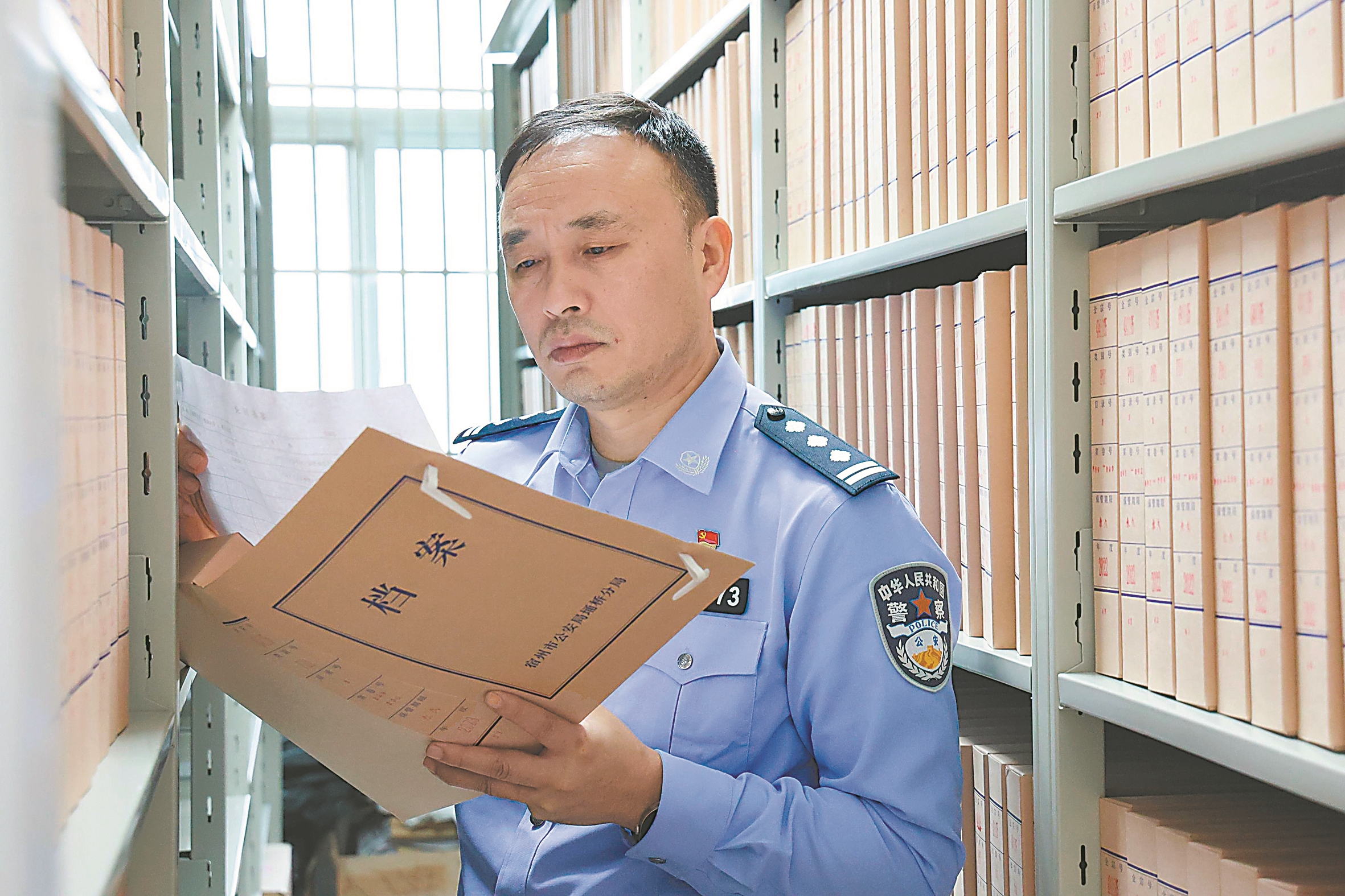 崔辉在档案室寻找积案的线索。本报记者 关敬生 摄