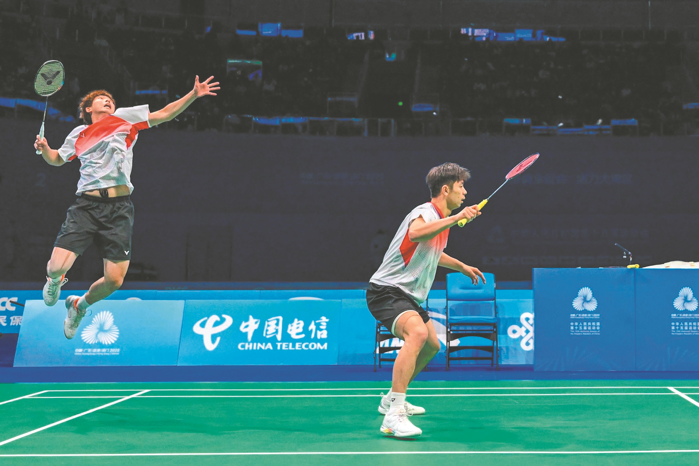 11月20日,安徽队组合刘阳(左)/刘毅在比赛中。本报记者 范柏文 摄