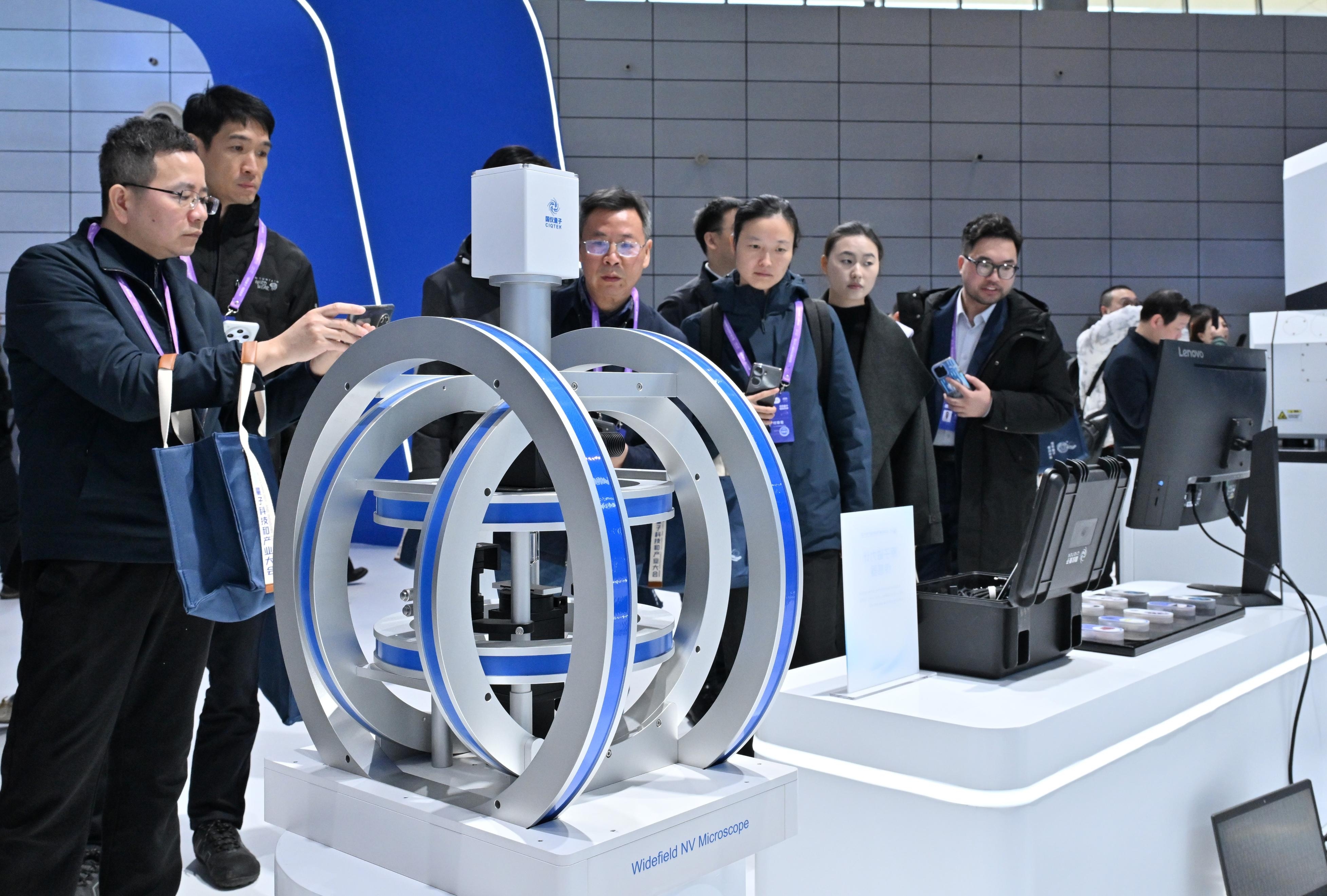 11月20日,2025量子科技和产业大会量子科技成果展上展示的宽场NV显微镜。