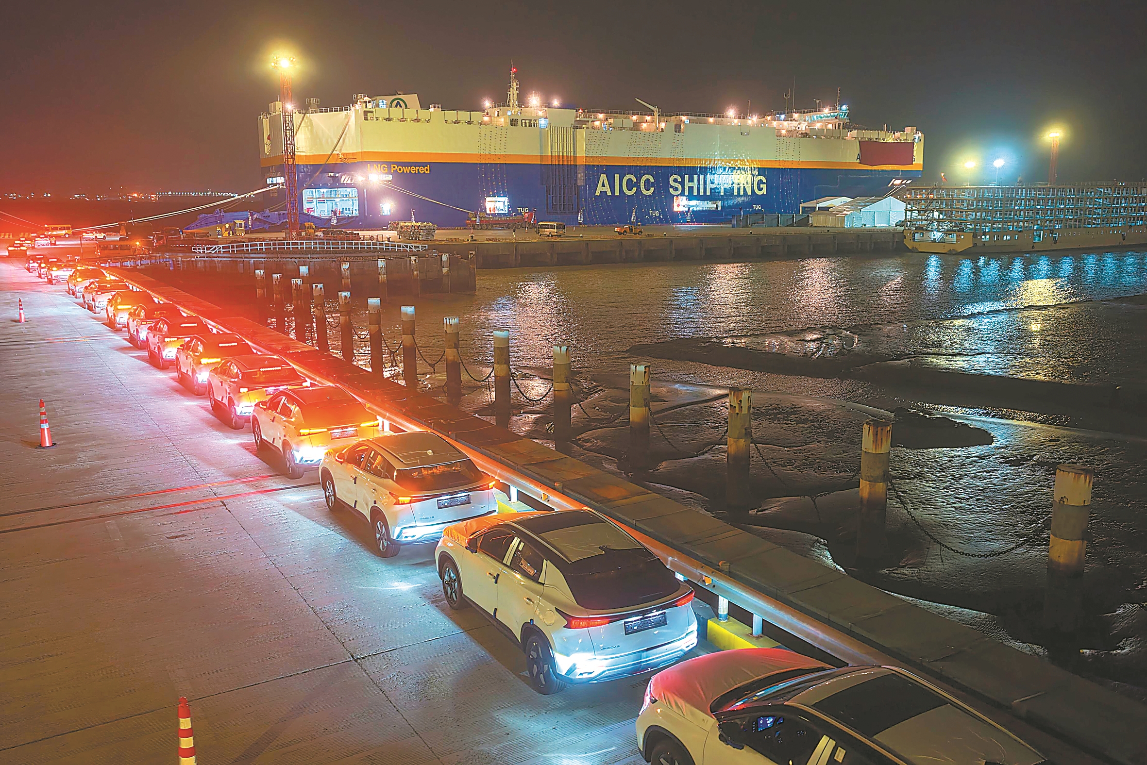 2025年9月28日晚,上海外高桥海通国际滚装码头,“凤凰”轮装载奇瑞新能源汽车,准备开启首航。