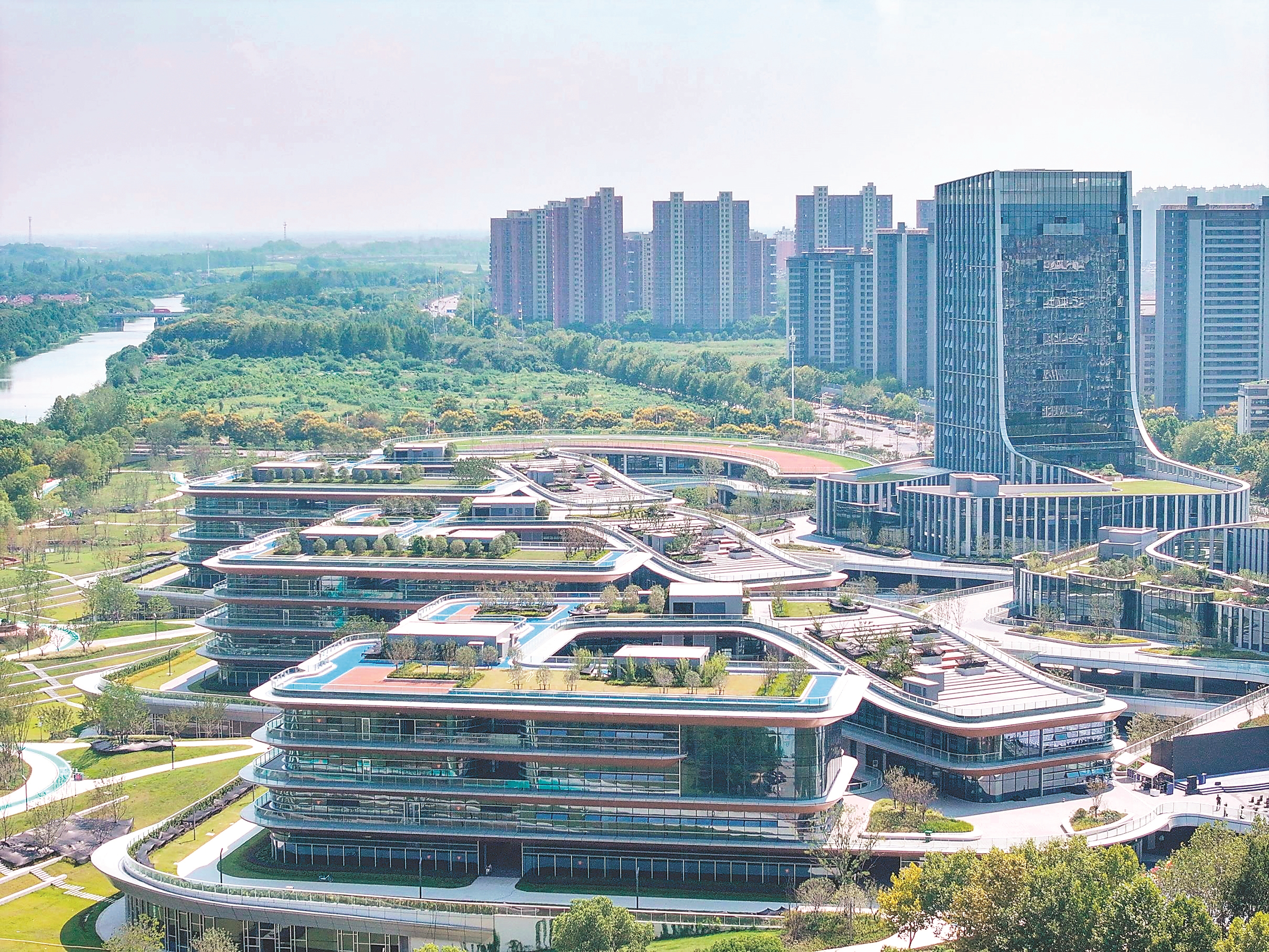日前,航拍的芜湖鸠兹科创湾核心区梦溪科创走廊。本报记者 徐旻昊 摄