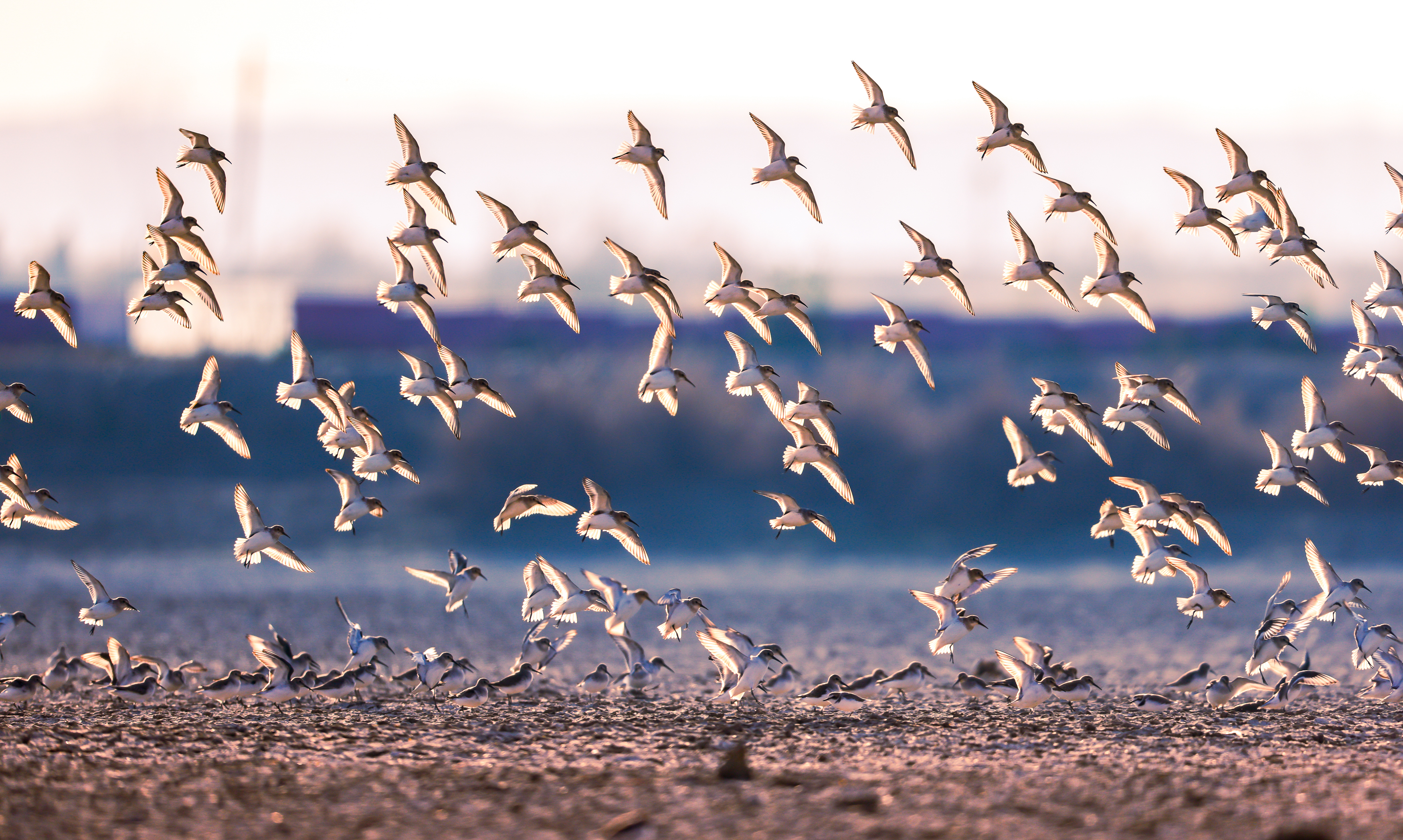 近日,合肥肥西三河国家湿地公园成群的黑腹滨鹬。本报通讯员 刘鸿宾 摄