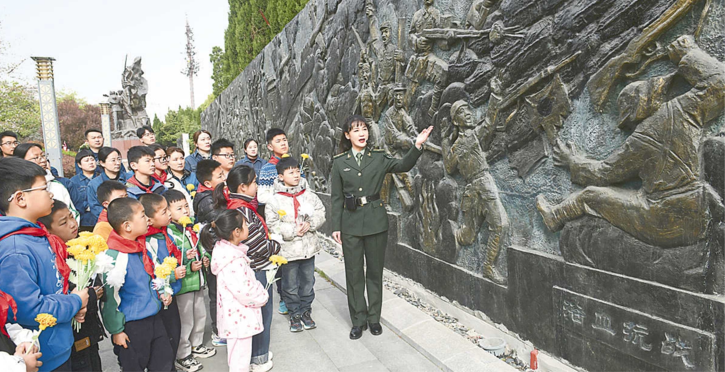 阜阳市某小学组织学生到和平广场瞻仰烈士纪念群雕,接受爱国主义教育。亓先锋 摄