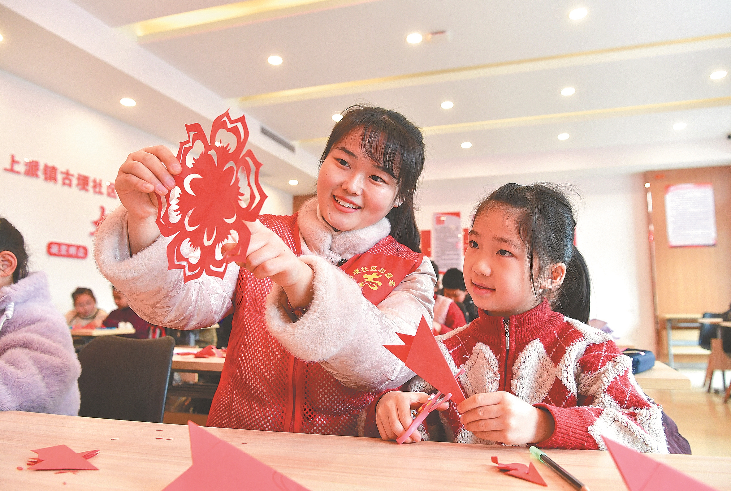 肥西县“五彩假日”托管班上,志愿者向中小学生免费提供创意手工制作、阅读分享、绘画、作业辅导等服务。 视觉中国供图