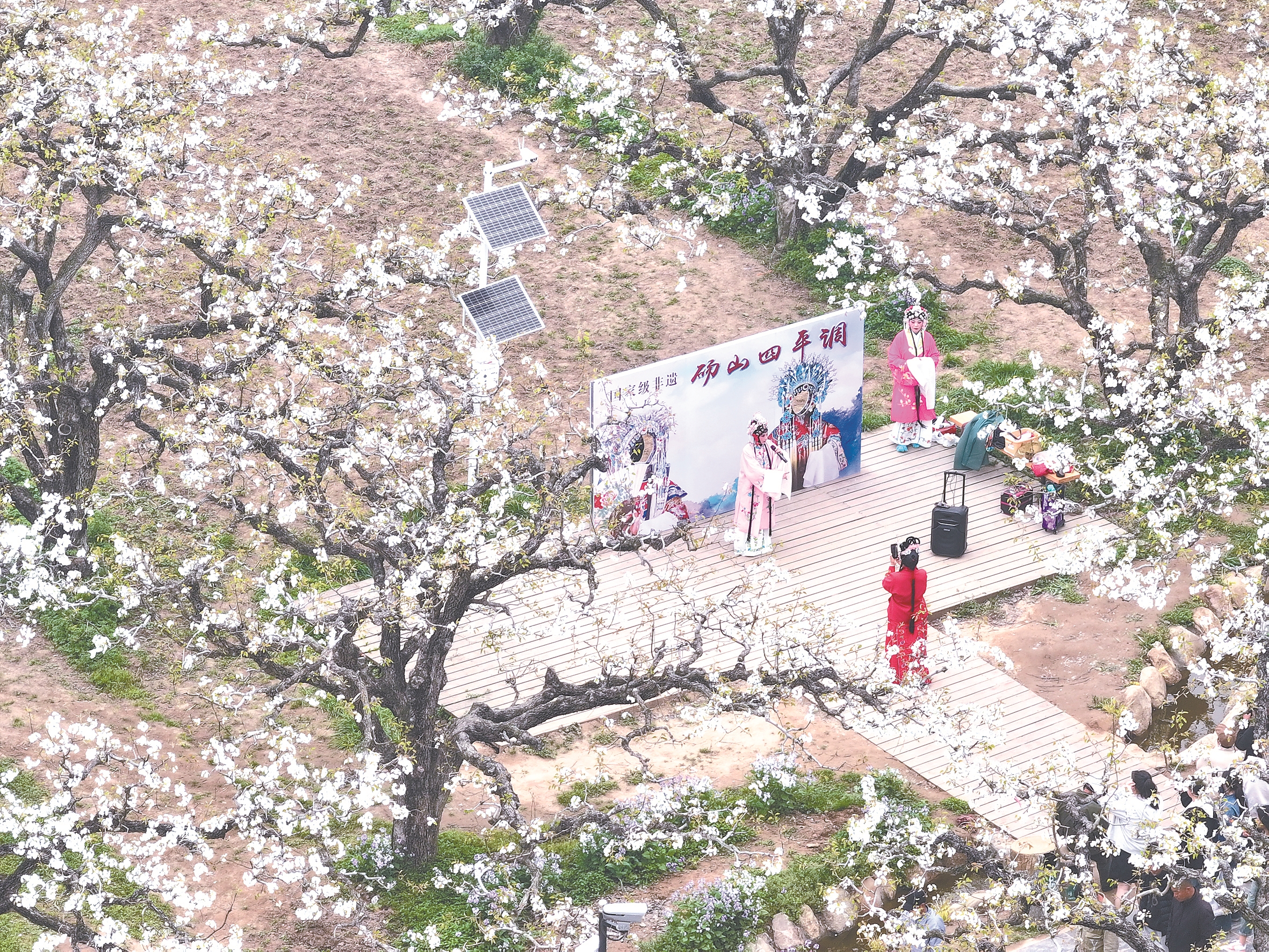 4月2日非遗代表性传承人在梨园表演国家级非遗砀山四平调。 本报记者 王兰兰 李博 实习生 俞志升 摄