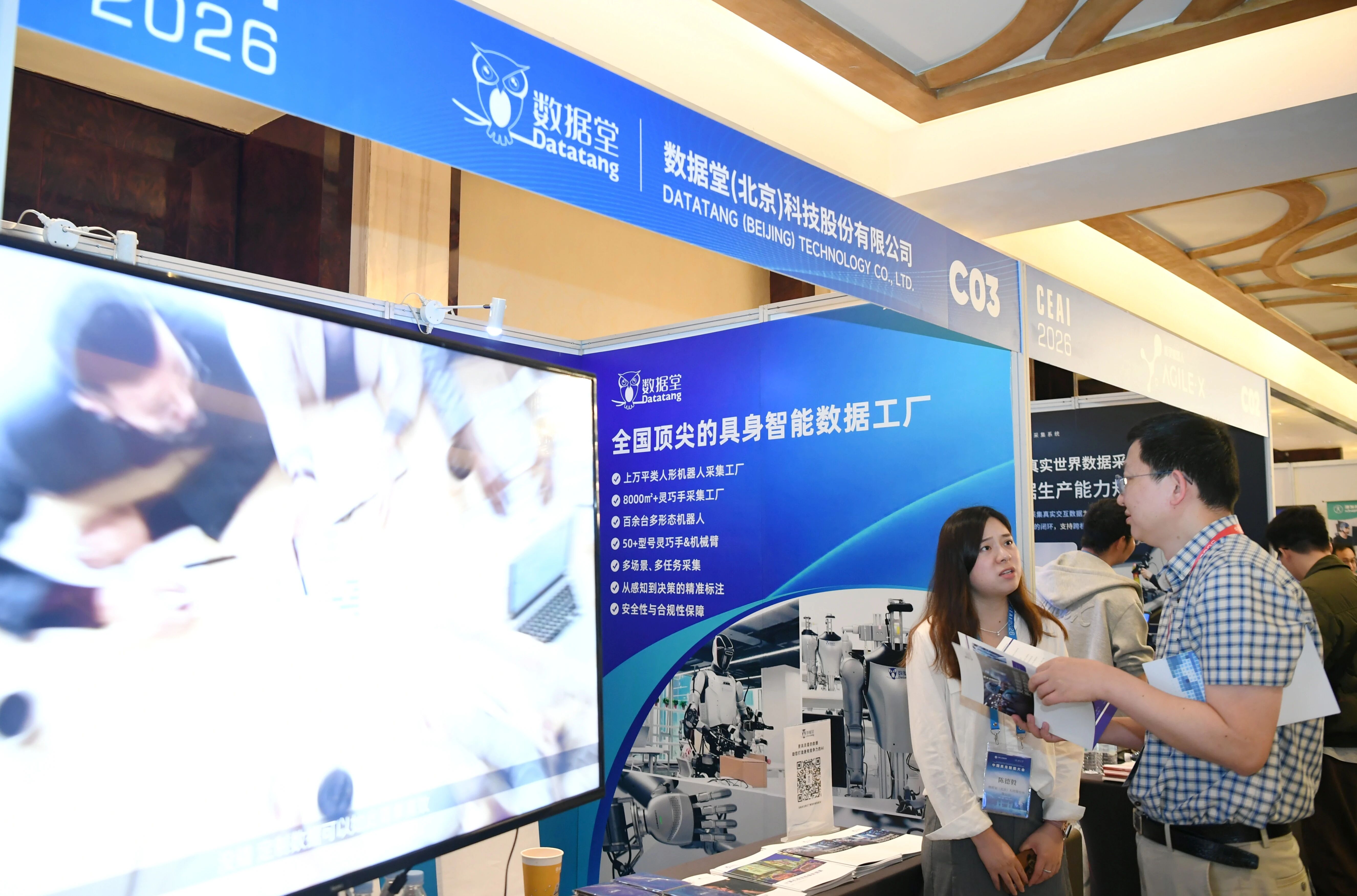 参会人员来到数据堂展区咨询洽谈。陈三虎 摄