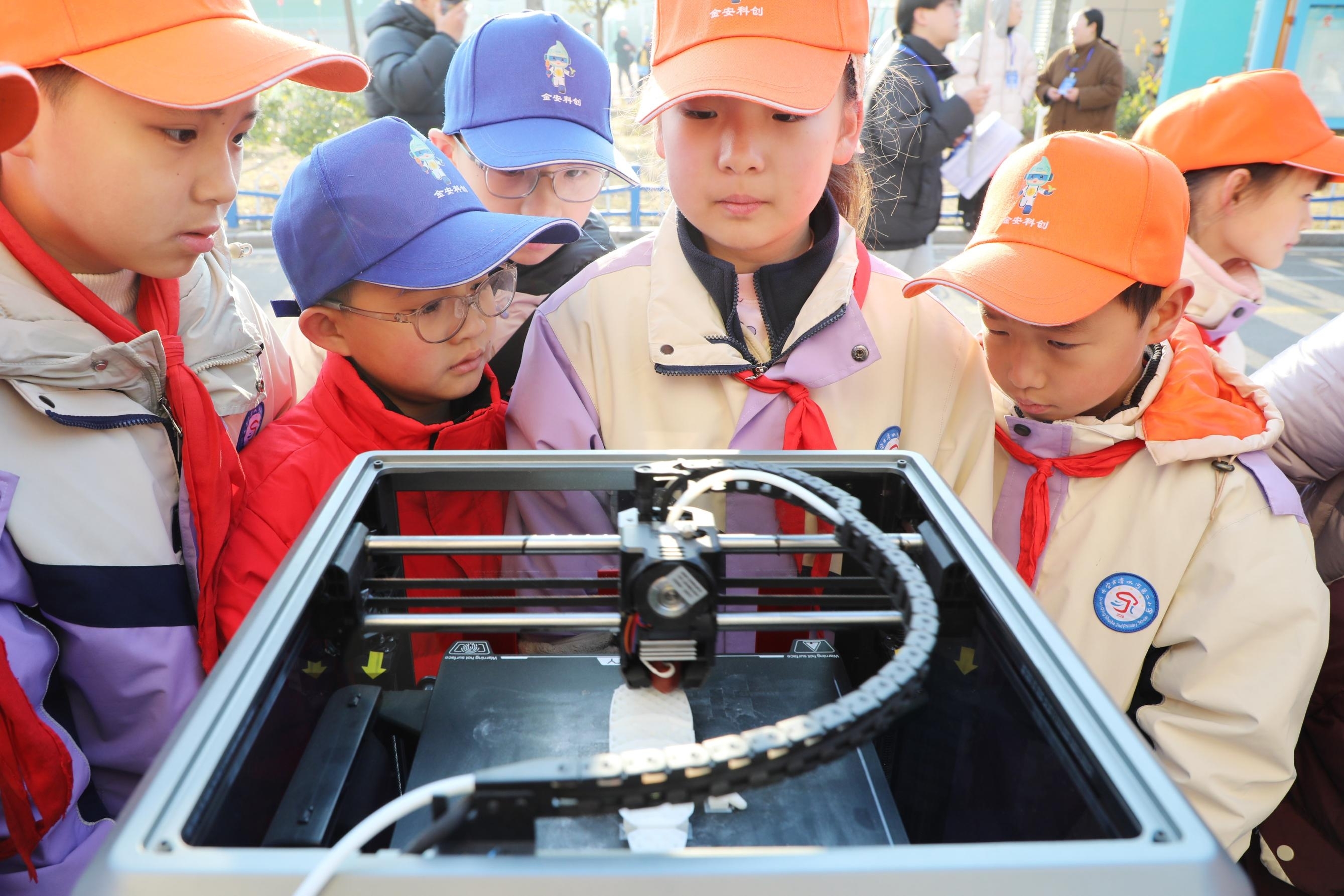 在六安市清水河第二小学,同学们观看3D打印。(资料图片)本报通讯员 田凯平 摄