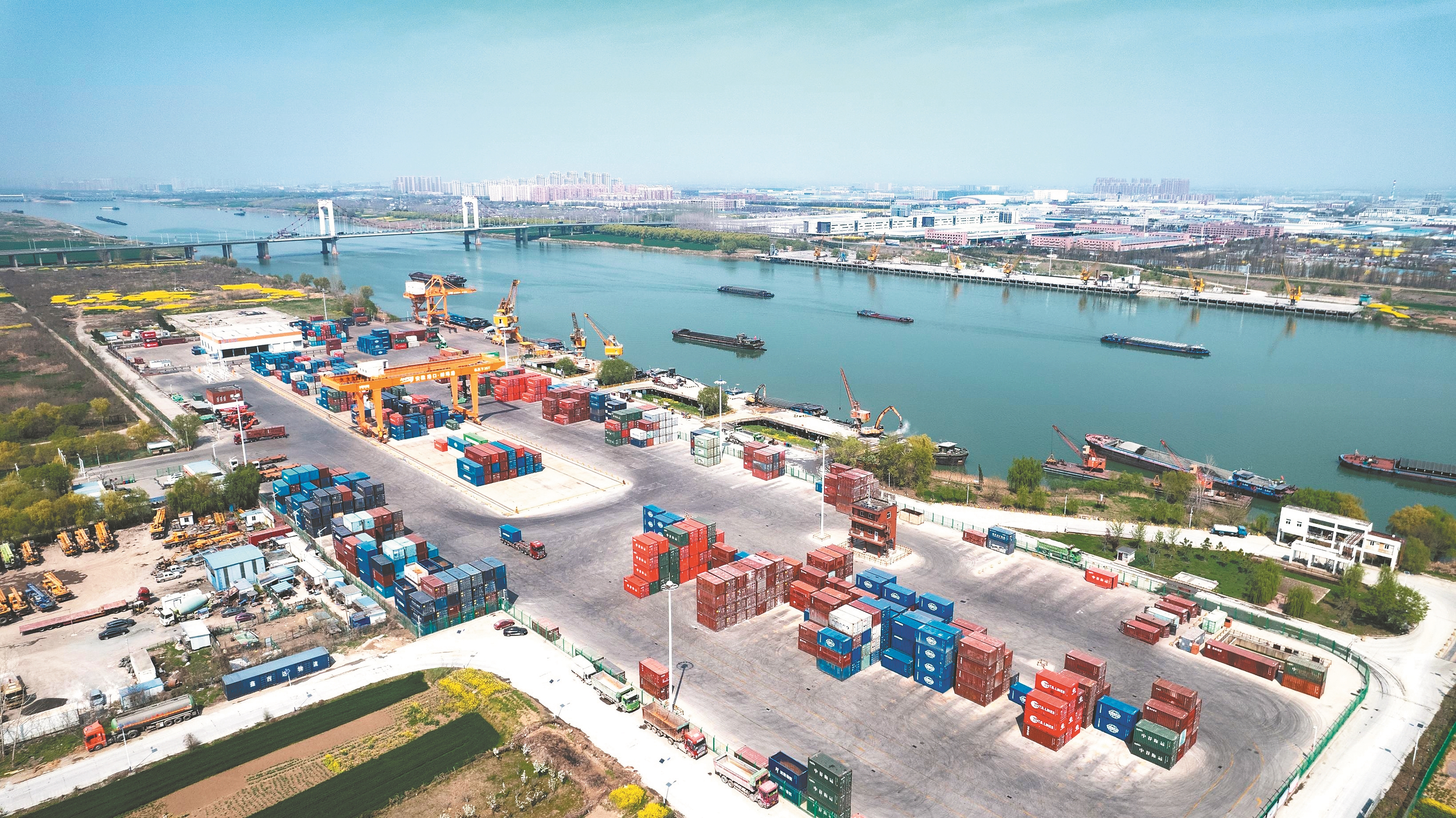 近日,蚌埠港国际集装箱码头,一派繁忙有序的景象。本报通讯员 马二虎 摄