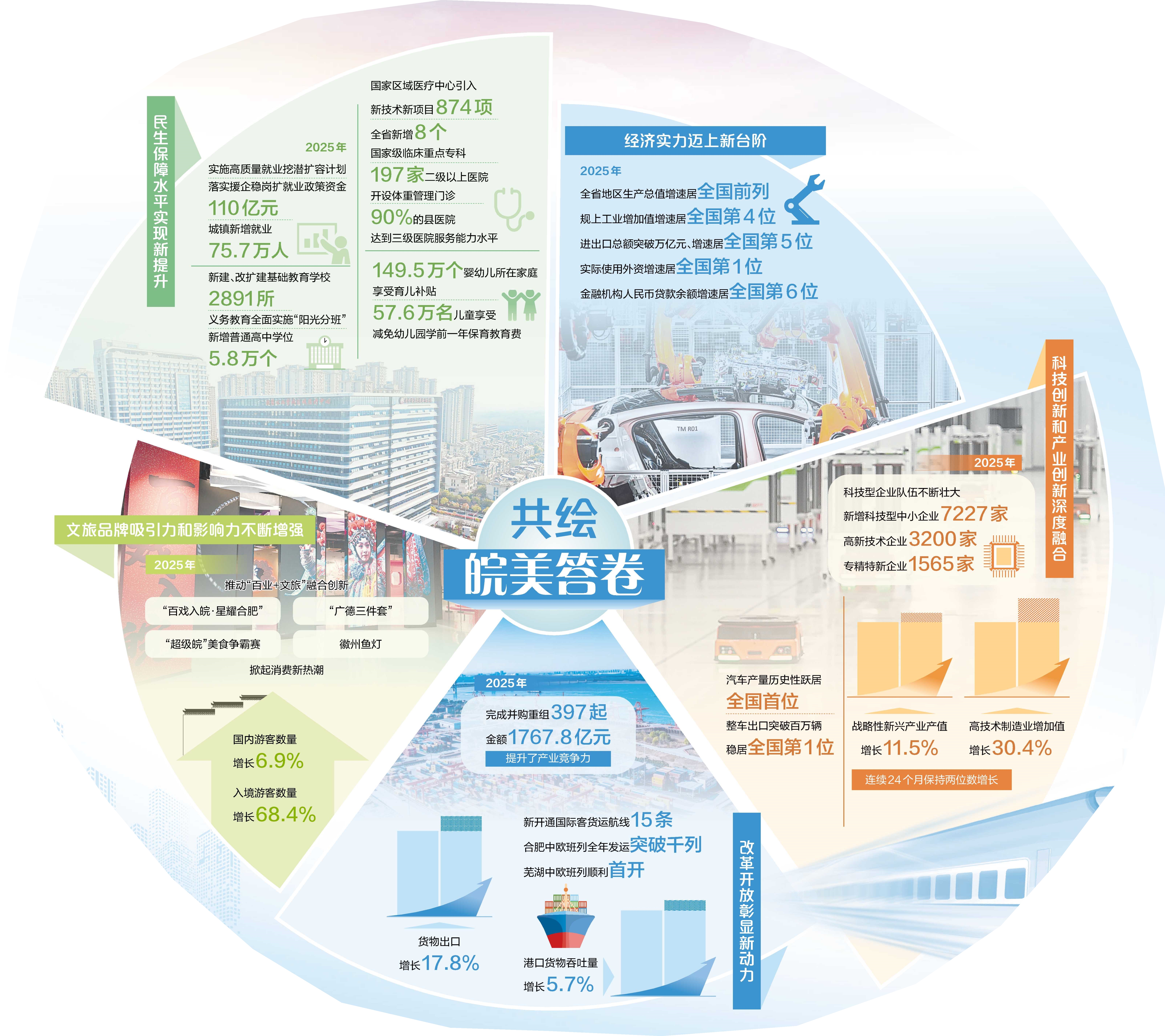 “日新”是发展的内在要求,更是安徽奋力追赶的必然选择。一个地区的发展活力,很大程度上取决于它能否持续自我革新、与时俱进。“十四五”以来,安徽经济总量连跨4万亿元、5万亿元两个台阶,2025年地区生产总值增速高于全国0.5个百分点、并列全国第五,一些工作在全国并跑领跑,持续展现出令人瞩目的位势之变、气质之变、形象之变。新时代新征程,唯有接续保持“日新”的自觉与能力,才能跳出路径依赖,打破思维定式,在新发展格局中找准定位、抢占先机。