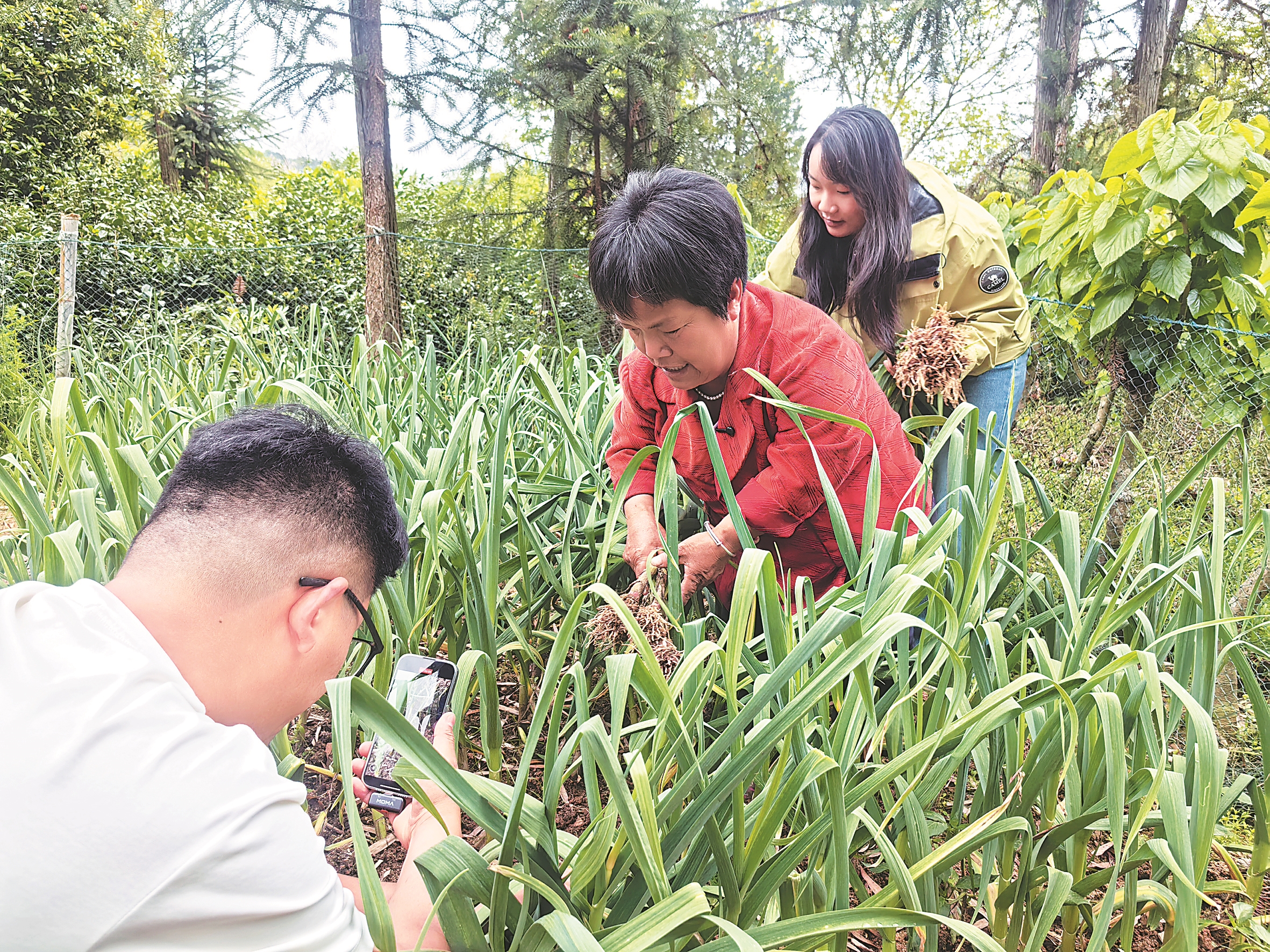 “袖珍妈妈”黄艳在录制地里劳作场景的短视频。本报记者 唐欢 摄