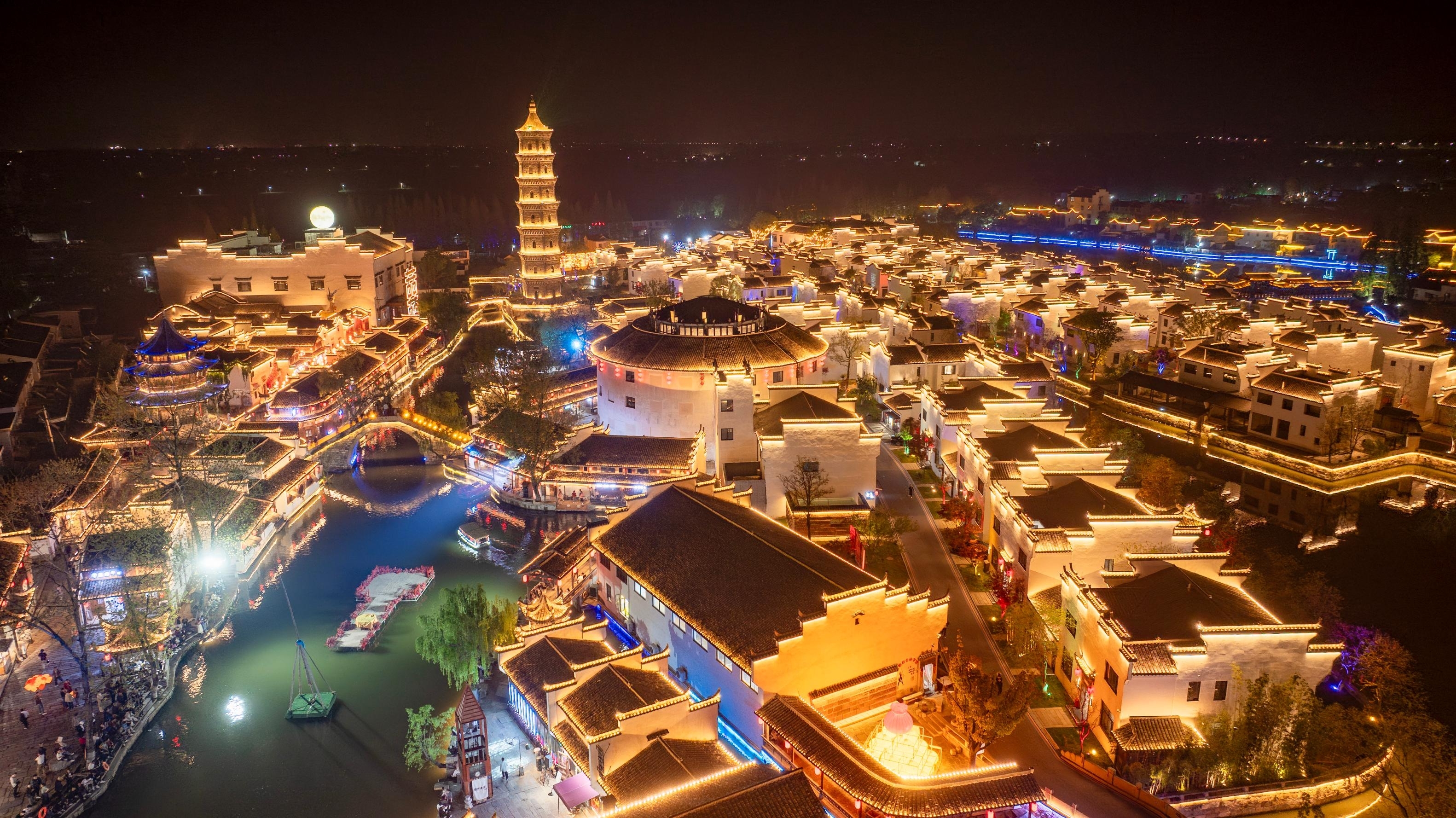想打卡春晚同款美景?一定要来三河古镇!作为中央广播电视总台春晚合肥分会场的取景地,2000盏鱼灯点亮青石板路,望月阁下马思纯与“和合童子”合掌的画面,让这座2500年的水乡古镇惊艳了全国。夜游小南河,《三河明月夜》的光影秀上演梦幻视听盛宴。