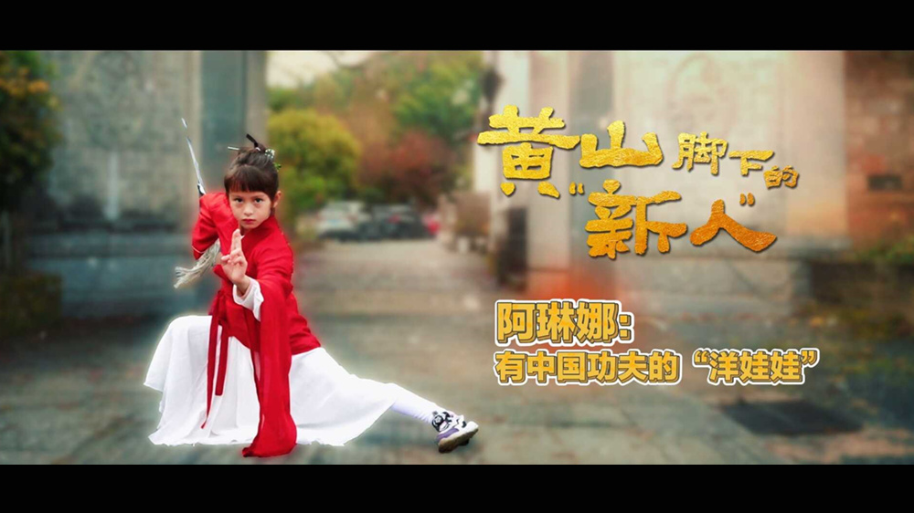 皖南乡间,一位七岁的金发女孩正舞动长剑,剑气与山风交织,仿佛从水墨画卷中走出的小女侠。