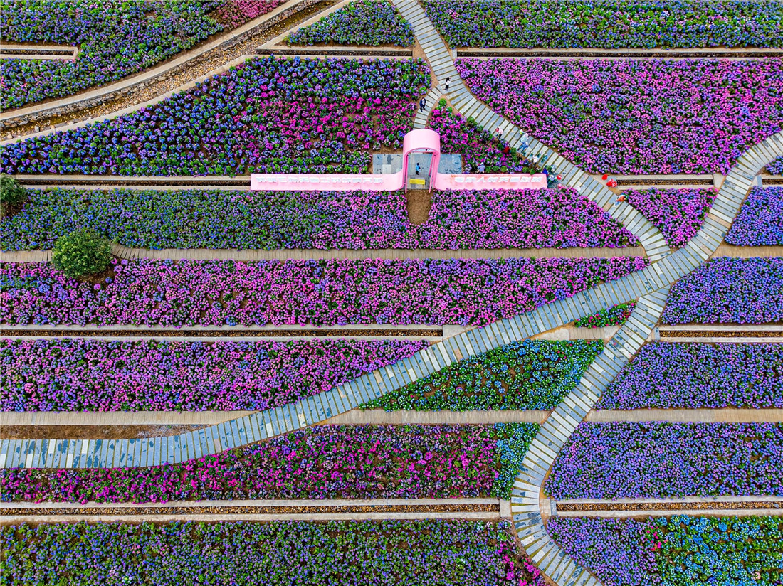 4月12日,铜陵市义安区凤凰山风景区,绣球花相继盛开,美不胜收,吸引众多游客前来赏花拍照。